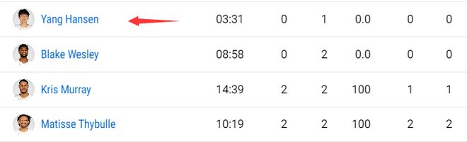 这场比赛杨瀚森就第一节打了3分31秒,一次中距离没能命中,拿到1篮板就被换下,之后的三节比赛杨瀚森直接坐穿了板凳,因为开拓者的小阵容太厉害了可以压制勇士队。
